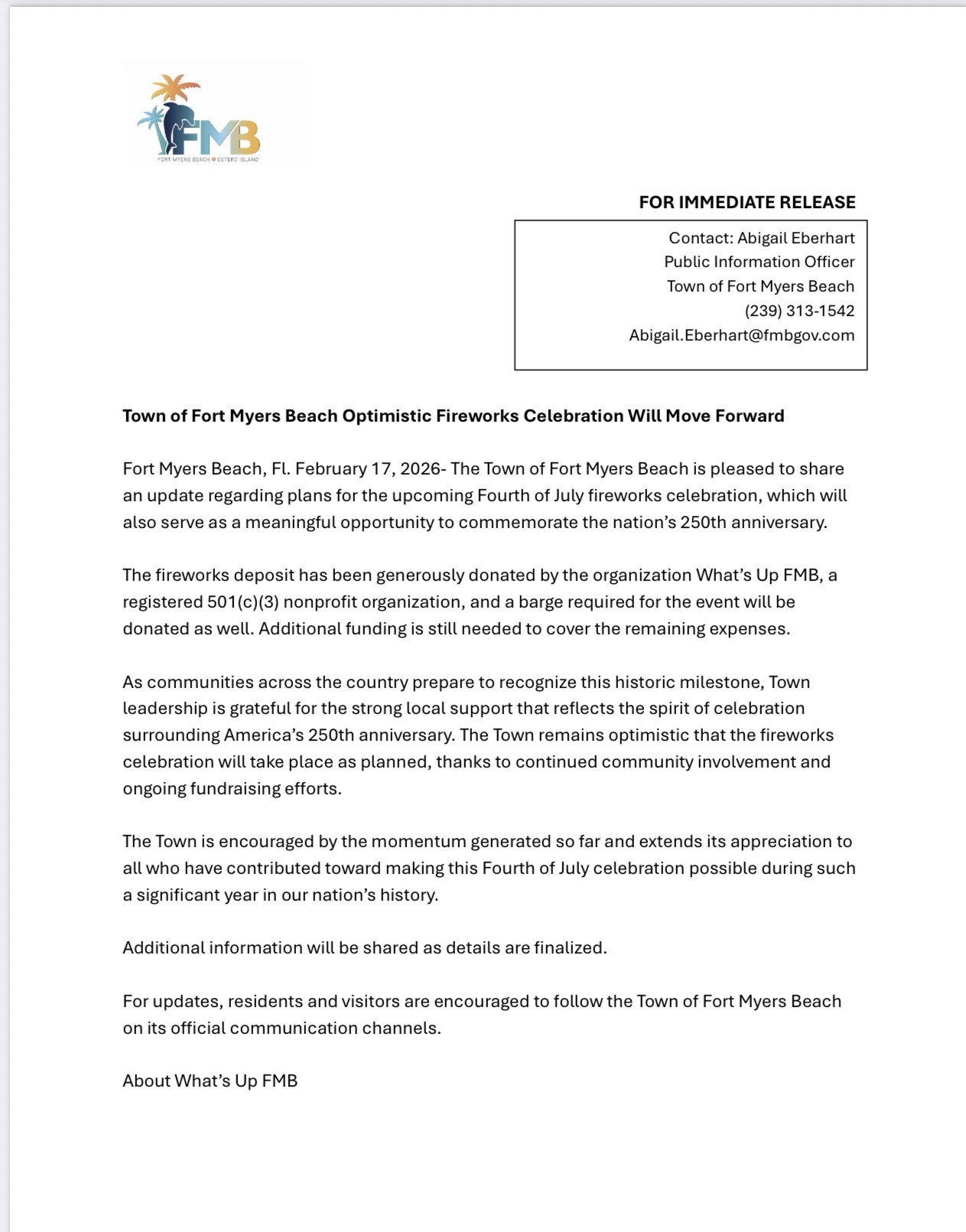 If you would like stop receiving these emails please contact doug@fmbchamber.com