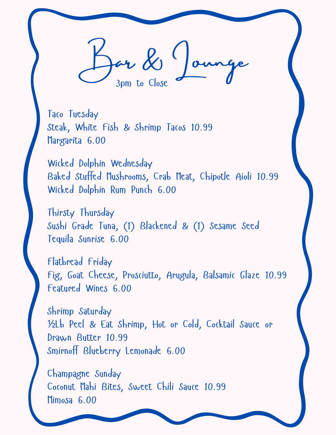 SPECIAL MENUS AT FRESH CATCH BISTRO